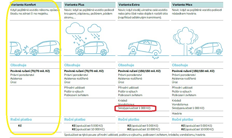 Tak jako dycky moje pojiščovačka dala rychlou, jasnou a variantní odpověď, bohužel ale (pokud opravdu chcu šetřit na max = žluto) to bude bez skla (červeno)....