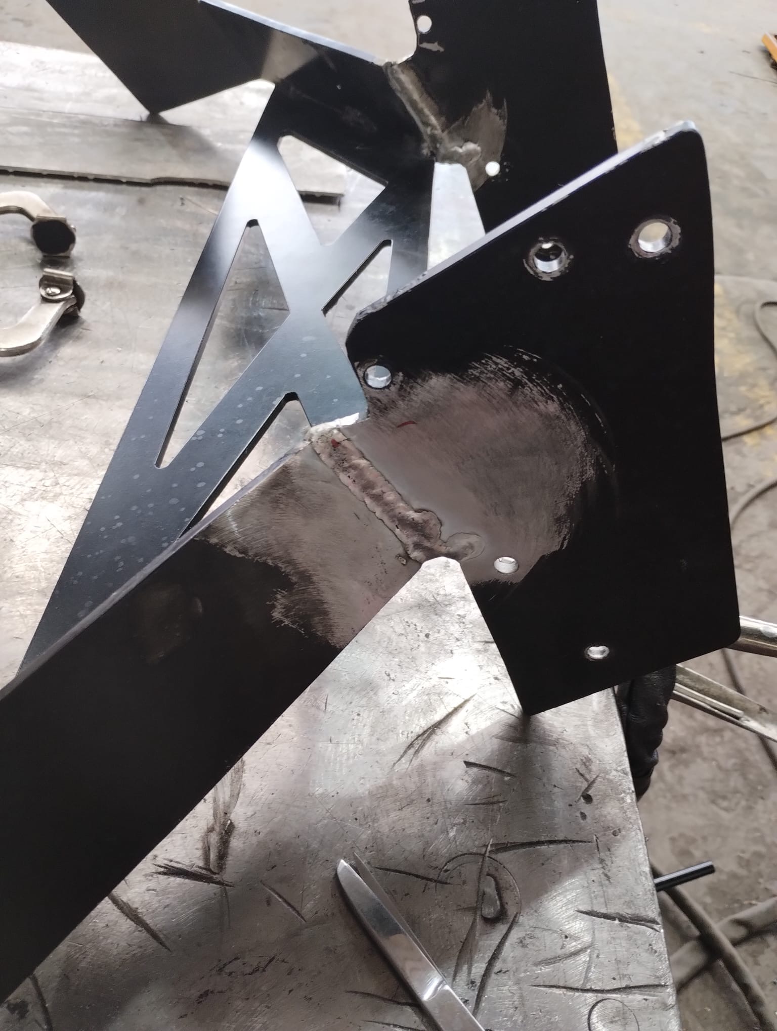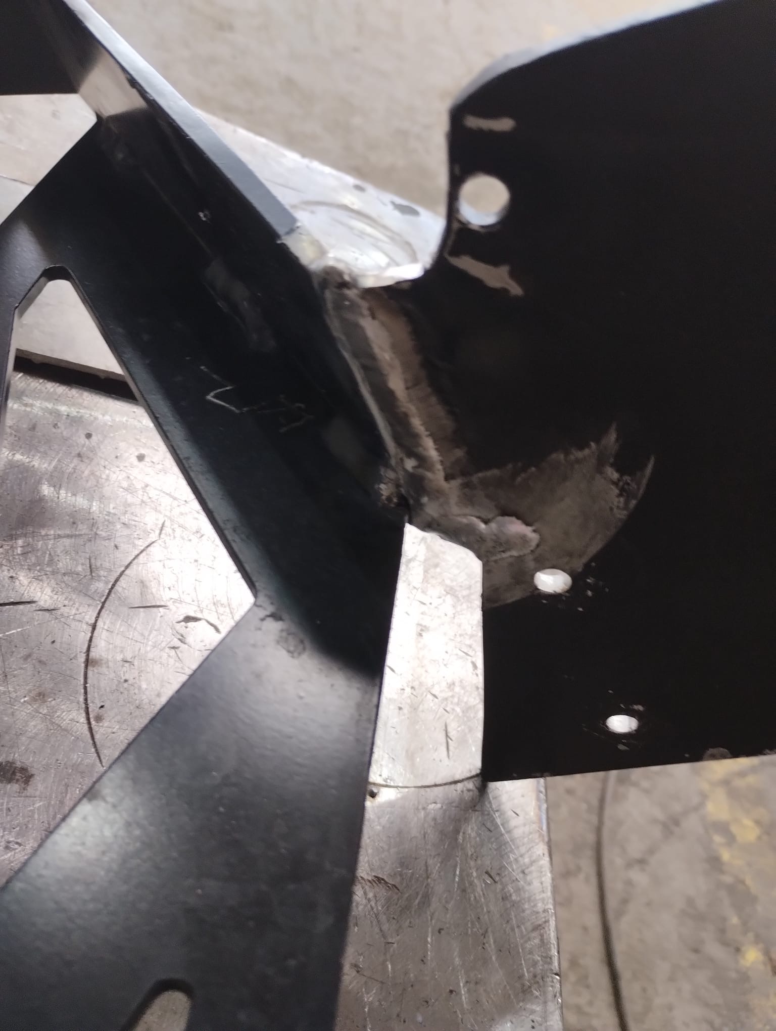 Nechal jsem si nacenit nový držák (s dopravou cca 20000,-) což jsem čekal i horší, nicméně zase bych dostal díl, který může v budoucnu prasknout... Takže jsem pověřil našeho svářeče a ten odvedl profi práci, křídlo svařil a do kritických míst v ohybu, ještě vevařil výztuhy