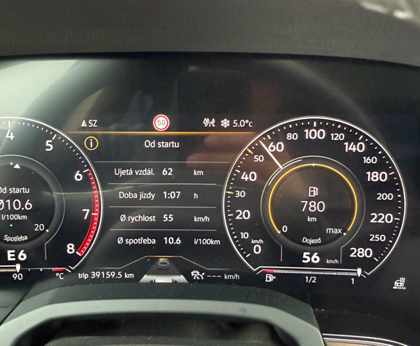 Touran 1.8 TSI, cisto dialnicnych 350km, mokro obcas prehanky, 150-160km/h, 8,8l/100km