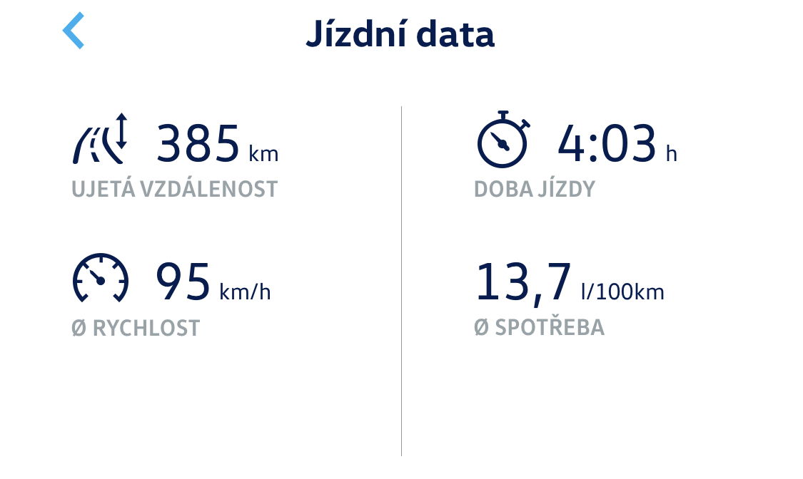 Plne nalozenej Touareg z Prahy na Dachstein (Ramsau) za 8.7 pri prumeru 90kmh. Poslednich 70 km po snehu a uplne poslednich 20 km na prazdny klikaty silnici, coz zhorsilo prumer cely cesty o 0.3