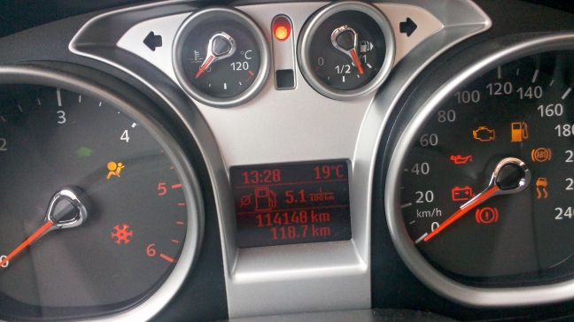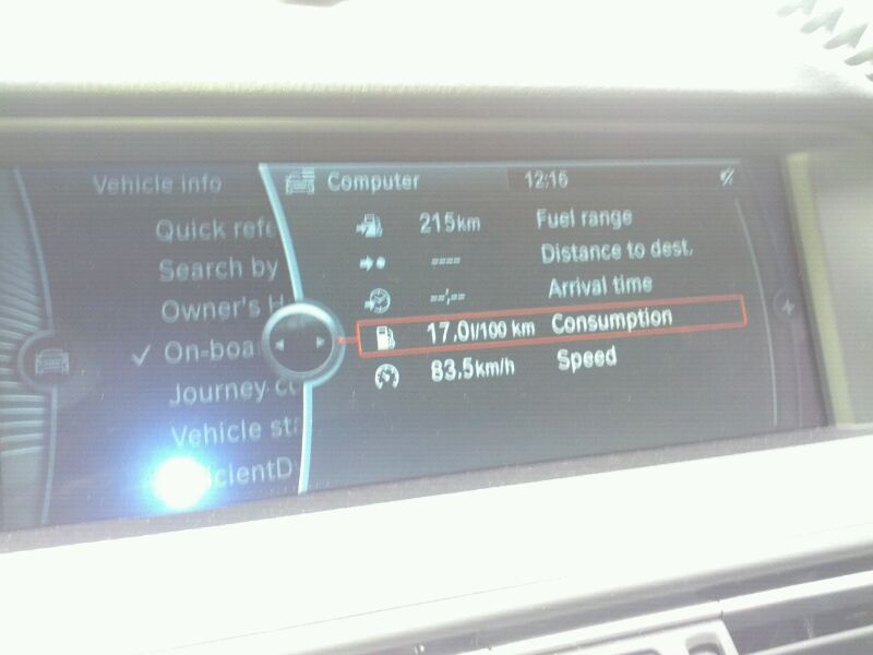 Koukám samé zbohatlické vozy, které žerou malé děti i s kočárky..... Tak já dám něco "sociálnějšího". Zobrazená spotřeba je po Praze v pracovní den při běžné jízdě +10km (a kde jsem se nebál, tak i více). Všimněte si luxusní zelené ekošipky v otáčkoměru = indikátor zařazení vyššího stupně.