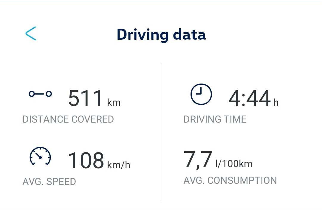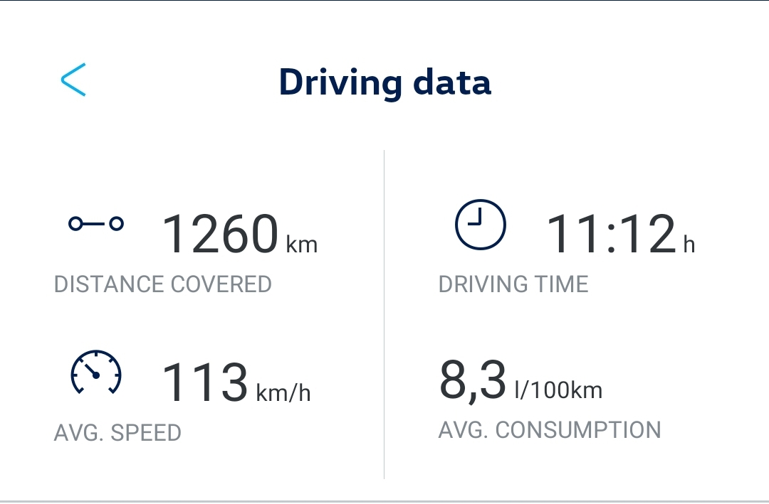 Nebyt lublana a viden totalne zasekane, tak to mohlo byt i malinko lepsi. Ale za carou jsem jel podle predpisu. Na hranicich sem mel 5,1. Z Mikulova do Opavy uz jsem jel po dalnici 150, tak to poskocilo na 5,3.