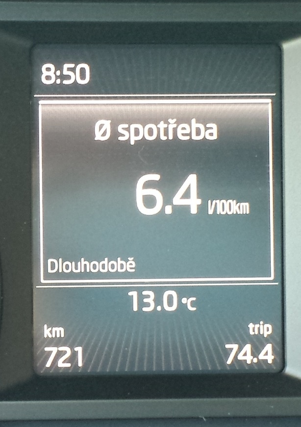 Dnes rano Bratislava - Trnava za 4.3 l/100km při průměrné rychlosti 96,4 km/h. Od nastartovani za studena po nocnim stani před hotelem, po mekac v trnave.