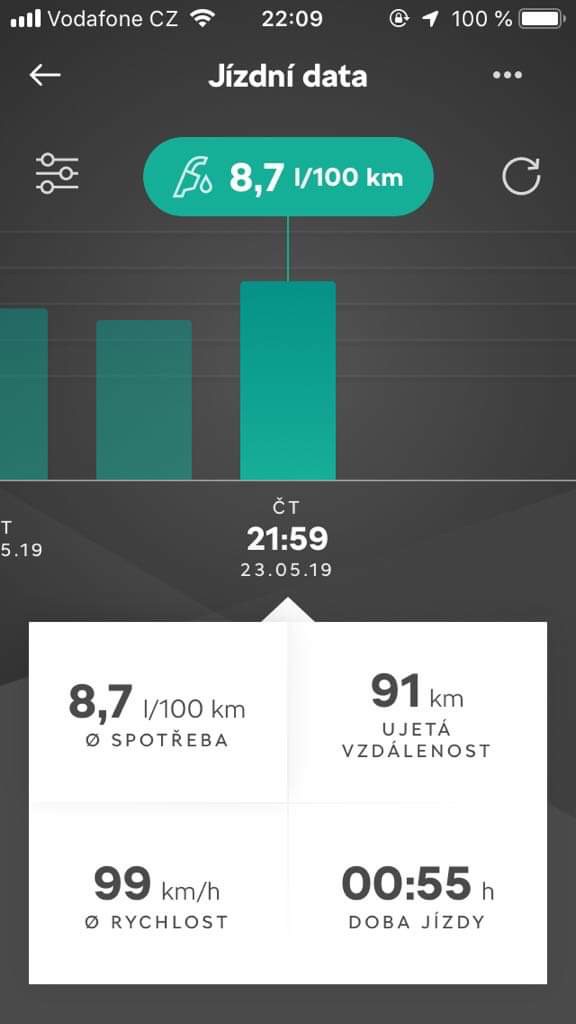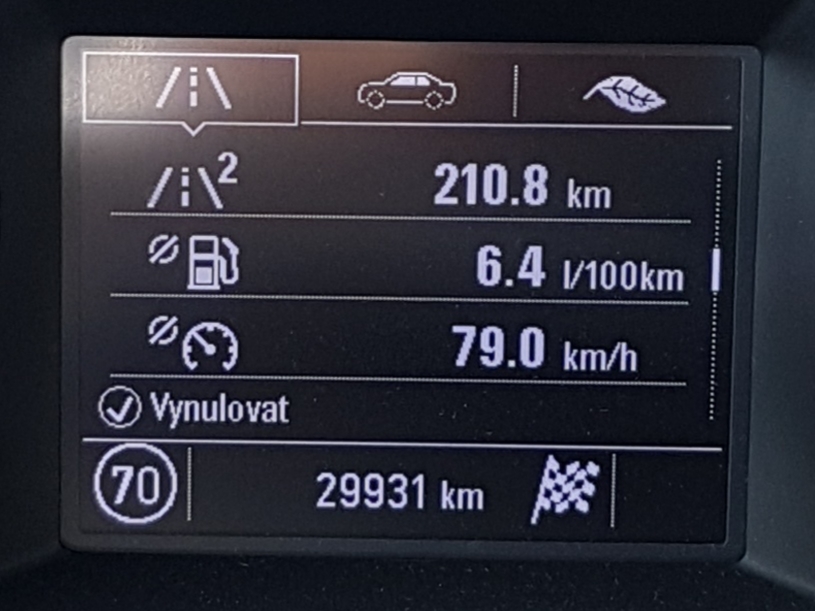 Cesta 50 km z toho cca 35km dálnice, průměr rychlost 80 kmh spotřeba dle pp 4,7l/100km