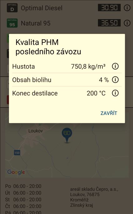 Parametry posledního závozu na té které pumpě jde sledovat v appce.