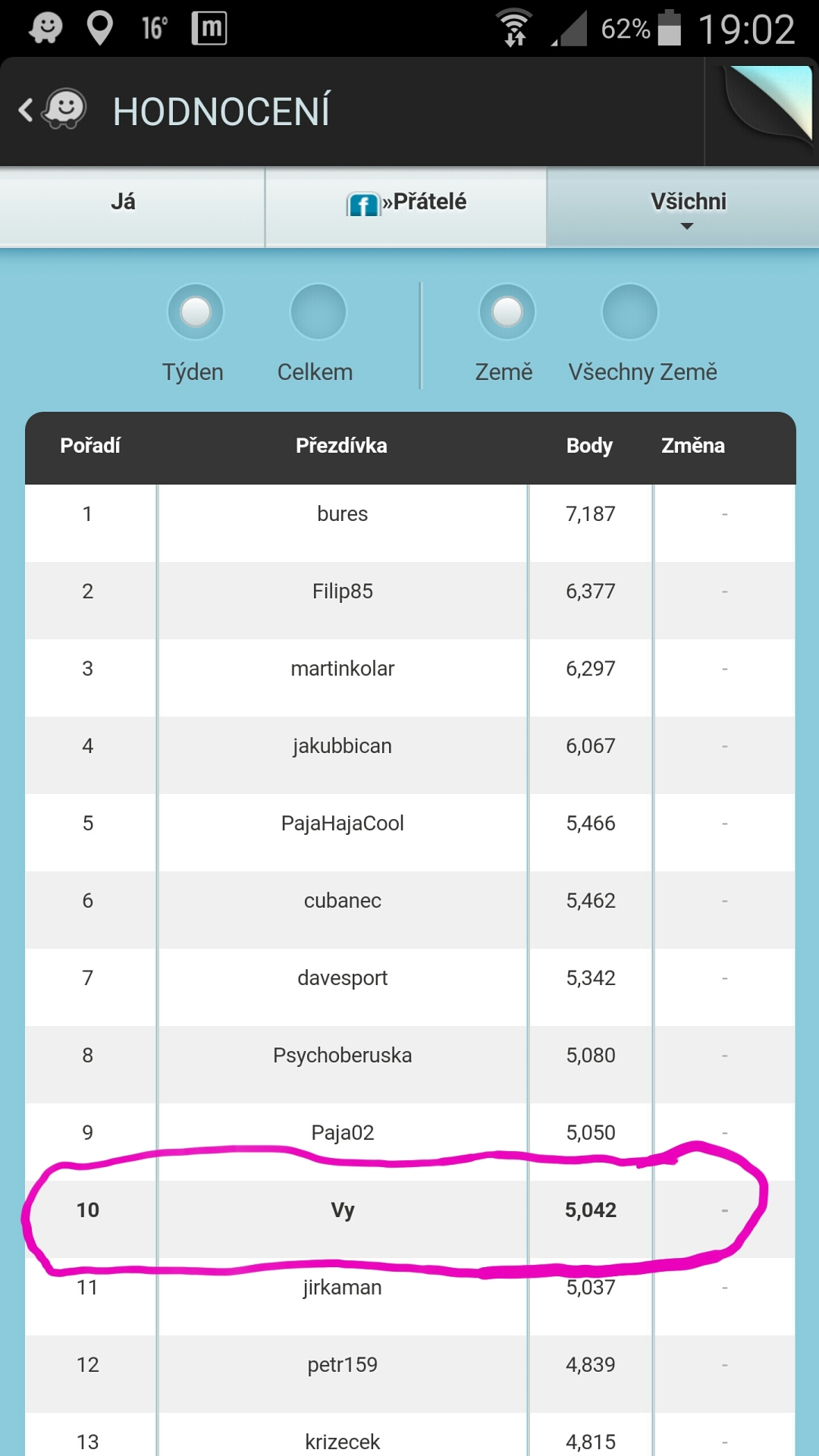 Ještě foto, ale klid, předpokládám, že těch devět předemnou jsou admini z Waze co