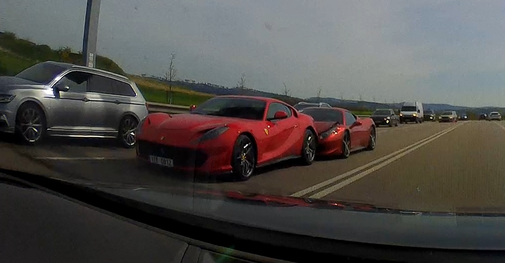 ja jsem ted videl v D kousek pred Rozvadovem, auto s CZ znackou, frajer zastavil v zatacce v rychlem pruhu a bez vesty obchazel auto
