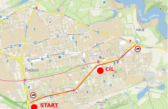 No a při zpáteční cestě jsem zjistil, že legální cesta byla tahle, protože tam byl taky zákaz+mimo zásobování - a já tam jenom projížděl, takže jsem spáchal tvrdý přestupek.