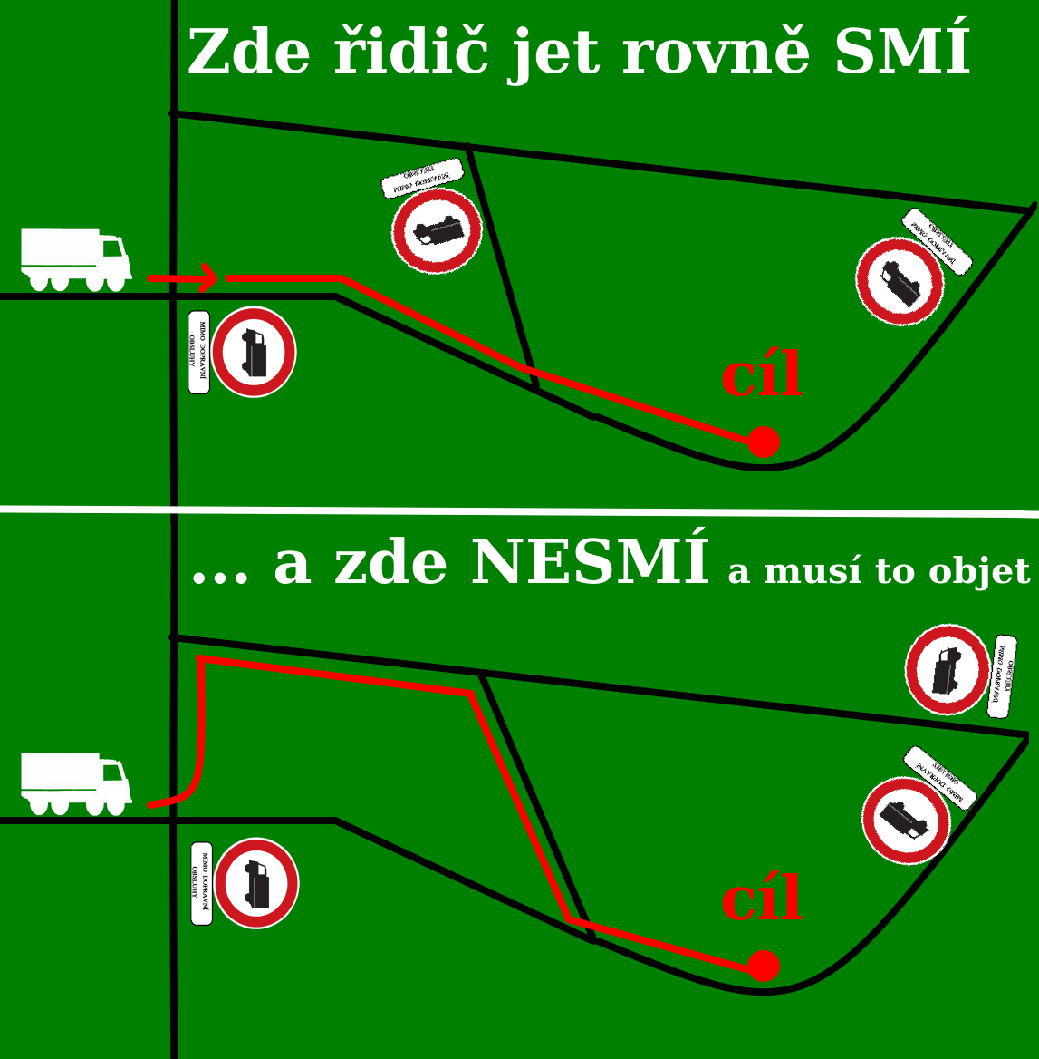Hodně jsme tu kdysi řešili zákaz pro nákladní vozidla vs. jejich časté porušování. Nevím kdo z vás to viděl u mě na fb, ale dám to i sem - z obrázku je snad patrný, že řidič stojící na křižovatce se zákazem má docela problém vyhodnotit, co s tím.