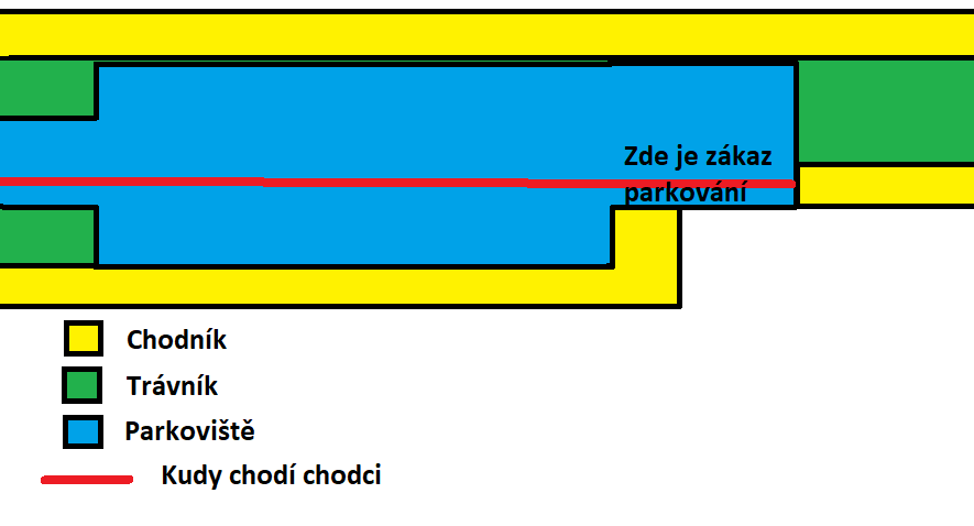 Jedná se o parkoviště, vyznačené chodníky, zeleň a kudy chodí chodci.