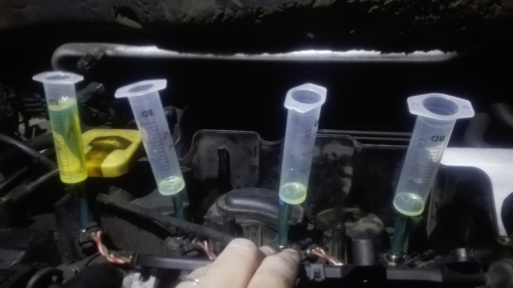Abych to dokončil :) Napadlo mě, když už to neumí diagnosticky změřit korekce, že vlastně můžu udělat přepadový test vstřikovačů. Tento výsledek nastal po cca pětivteřinovém chodu motoru na volnoběh: