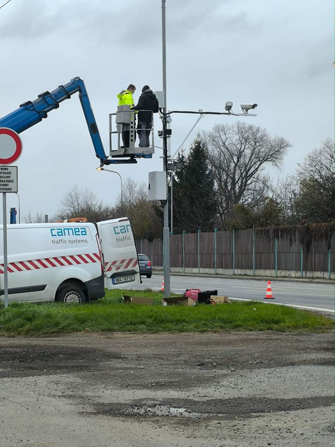 Dnes montovaná nová usekovka na I/50 na 70 v křižovatce Míkovice/Vésky 49.0413284N, 17.5020646E