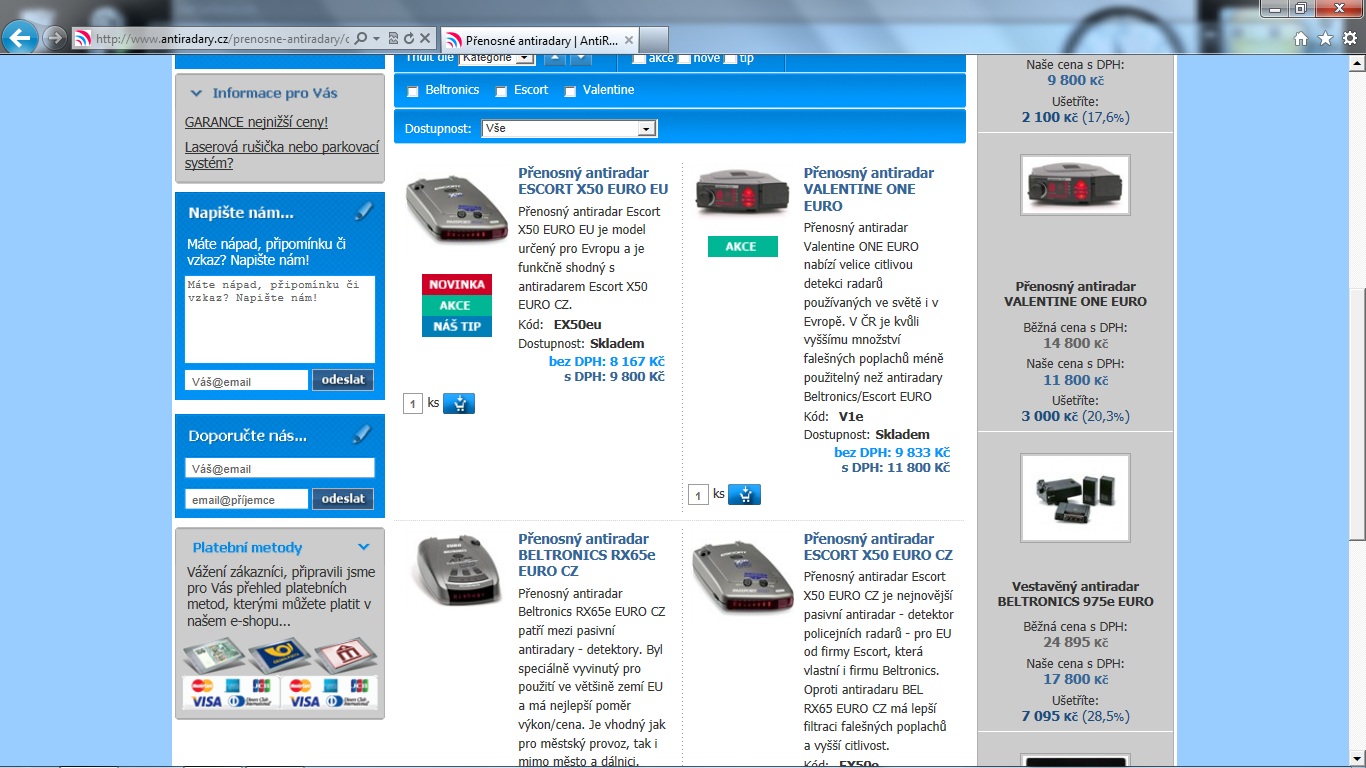 To co antiradary.cz píše je evidentně motivováno pouze tím, že jeho prodeje šly vzhledem k jeho obchodní neschpnosti hodně dolů - až na takovou míru, že se mu vyplatí dumpovat ceny a nyní se realizuje alespoň na internetových fórech a také tím, že "přesedlal" na novou "správnou" značku Stinger, kterou všemožně klamavě propaguje a vychvaluje. Mimochodem v ČR (v údajné CZ verzi, i když identickou si můžete objednat třeba v Německu, nebo Rakousku) ten jeho Stinger nabízí dráž až o více než 10 000Kč než je obvyklá cena v cizině!