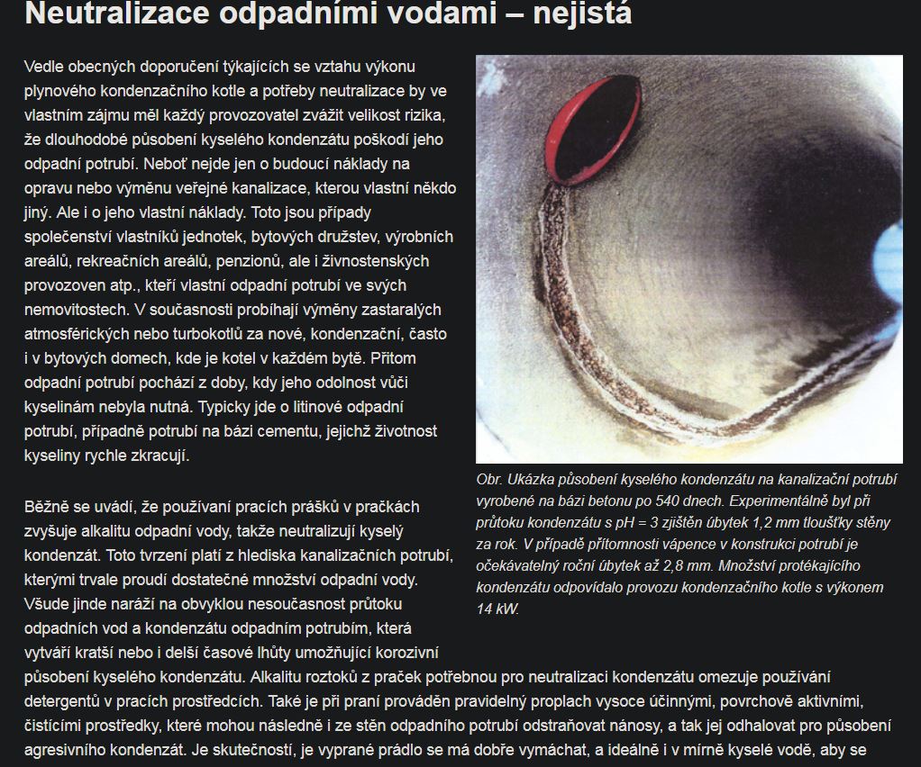 Pak je ještě zajímavá pasáž ke konci o (ne)kvalitě použitých materiálů kotle ve vztahu k leptavému působení kondenzátu.