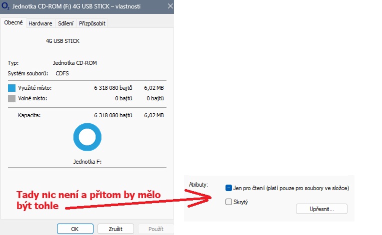 Z5 k IT - neska od rána bojuju s Win11Pro (a zatím bez úspěchu): Potřebuju nastavit (externí datový) disk F: (datastick USB O2, neobejdu se bez něj = trvale v portu) jako skrytý a nelze nijak a ničím: Ani průzkumníkem, ani správcem disků ani jiným file managerem, ten disk je nějaký divný/začarovaný.... nebo ty moje wokna. Grrr. Nemáte něgdo nějaký nápad?