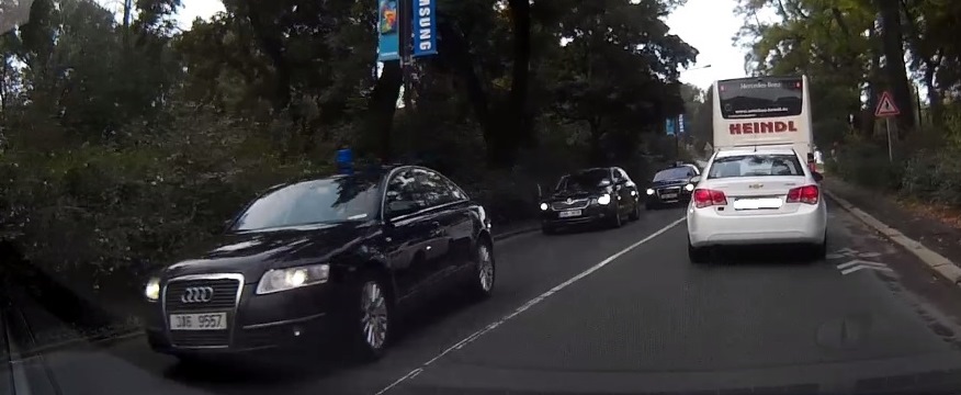 To jako jede policajt v Audi vpředu, policajt v Audi vzadu a pan prasedent v tom boleslavském kostitřasu?
