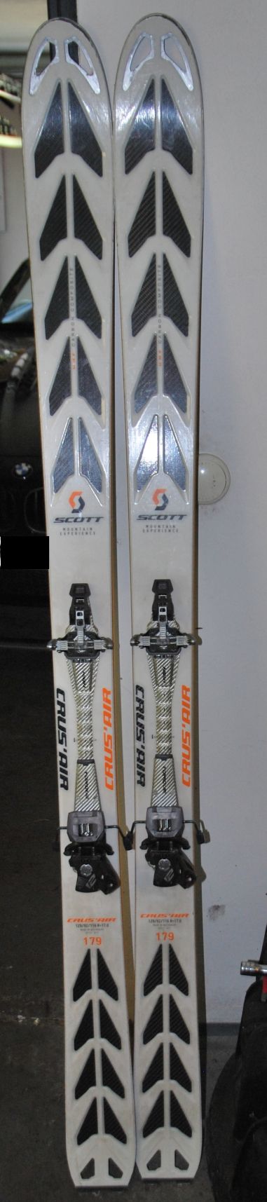 Skialpo lyže Scott Crusair (bílé, model asi 2010) délky 179cm (129/92/116 mm R 17) s vázáním Dynafit TLT 12 a brzdami Dynafit TLT vč. jednoho páru pásů přesně na tuto lyži. Skluznice a hrany v perfektním stavu (používal jsem je jen na "lepší" podmínky).