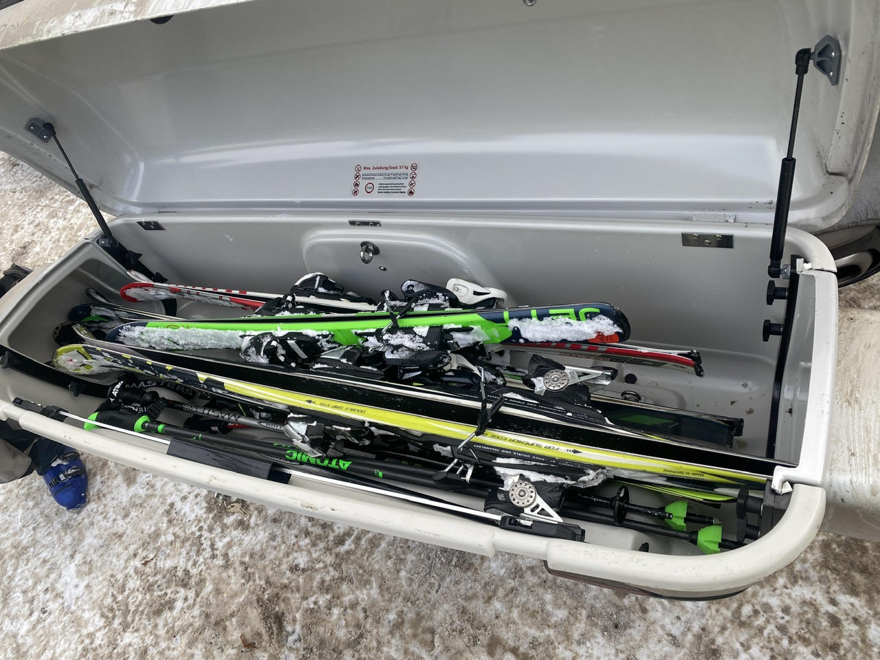 Zajímavost na konec, celkem to na parkovišti u lanovky budilo rozruch, par lidi se přišlo zeptat co to je, odkud a jak se tam lyže vejdou