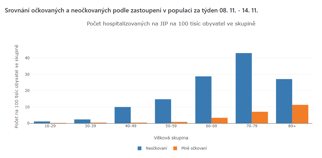 V nemocnici neočkovaní vs očkovaní 628:425. Ja JIP neočkovaní vs očkovaní 110:48.