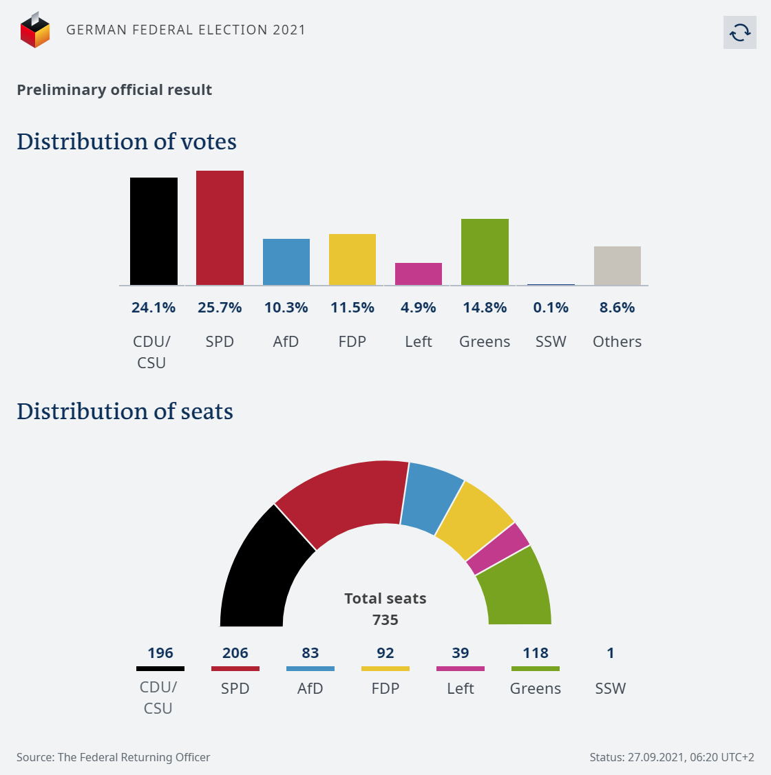 CDU/CSU si to zavinily sami. Namísto na jaře silně populárního Södera se tam protlačil Laschet a ten to totálně podělal chováním se při povodních. Nakonec to skončí opět velkou koalicí a lidi se opět o trochu víc naštvou. AfD nejsilnější strana ve většině volebních okrsků Saska a Duryňska.