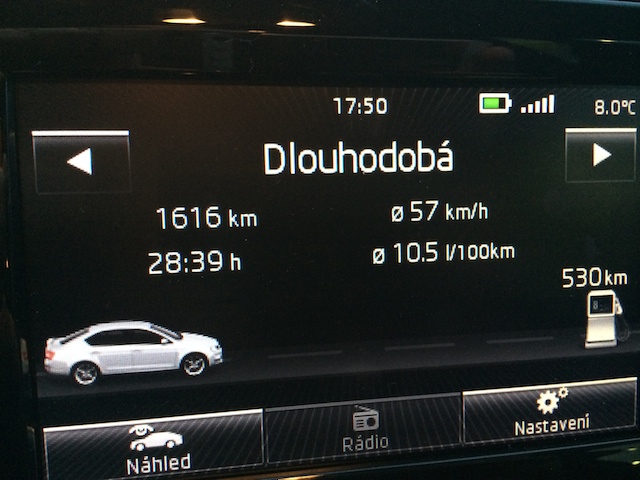Při tom rychlostním průměru bych čekal lepší spotřebu, mě to aktuálně ukazuje 10,7l při průměru 70,3km a to často brblám na volnoběh tak 5min. než ráno vyjedu.