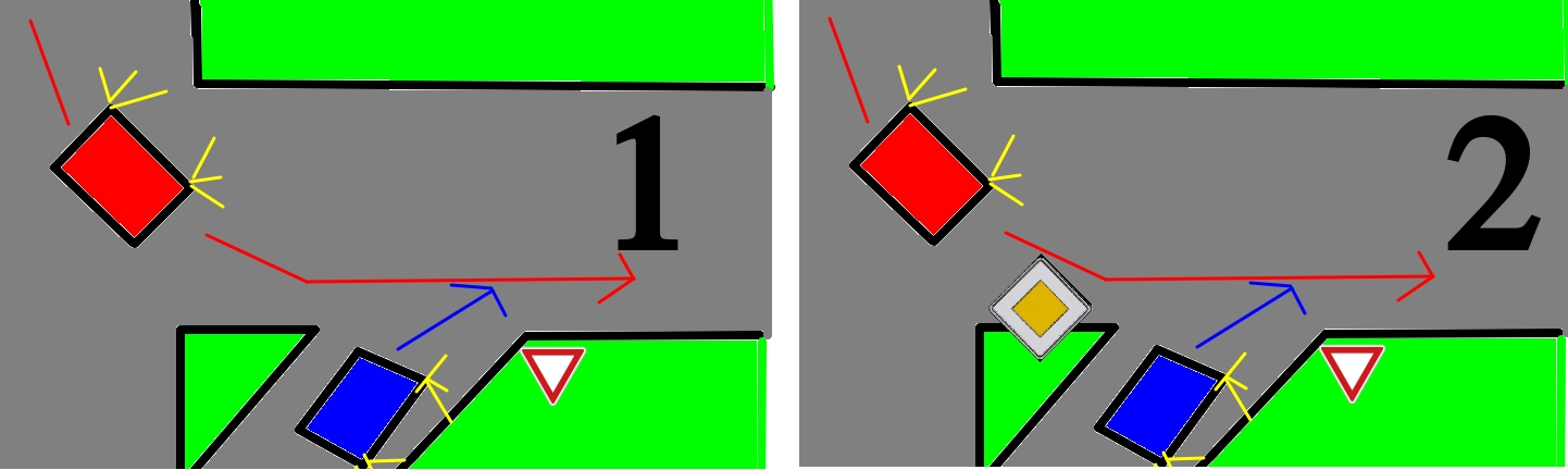V obrázku 1 má modré vozidlo přednost (můj odkaz)