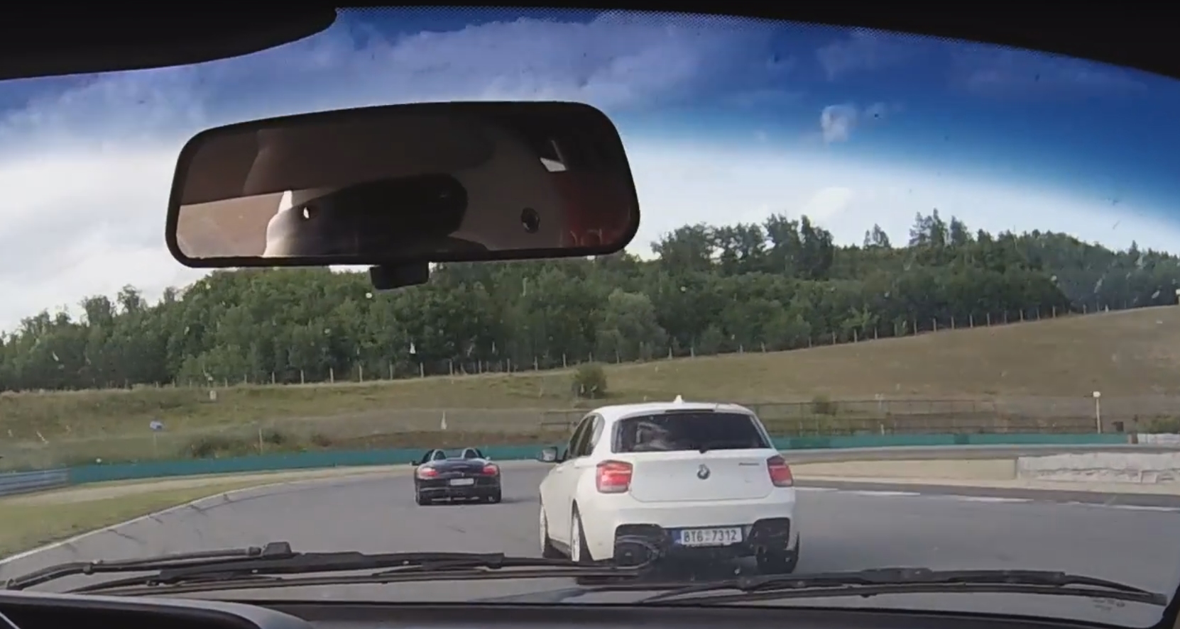 - maník s Ferrari 430 Spider, sice s odbarvenou blondýnou na sedadle spolujezdce, zato naprosto netušící, jak se na okruhu jezdí