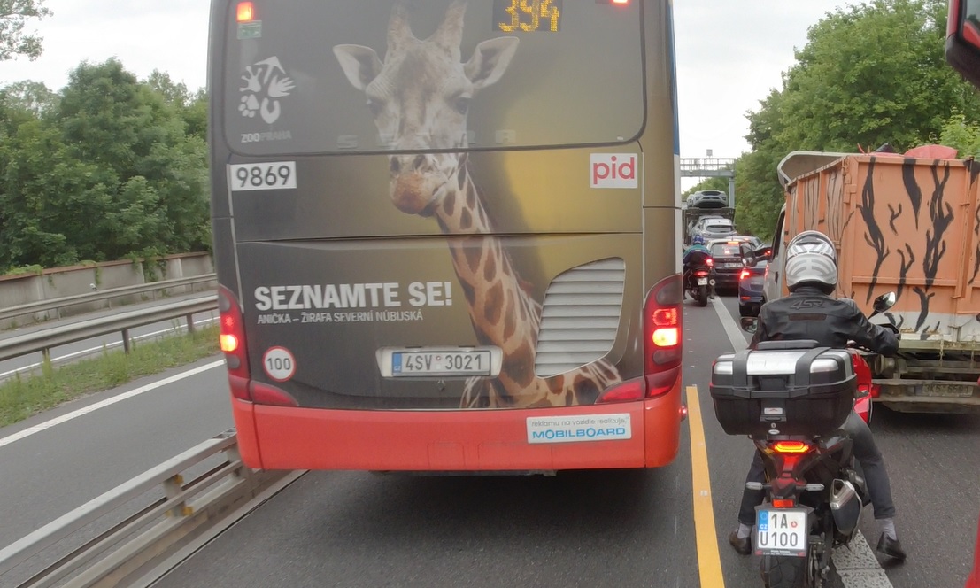 Já na moto dojel až k té nehodě. Je fakt, že ti lidé stojí jak kryplové na středové čáře. Autobusáka v zákazu nekomentuji...rovnou jsem ho oznámil, kokota.