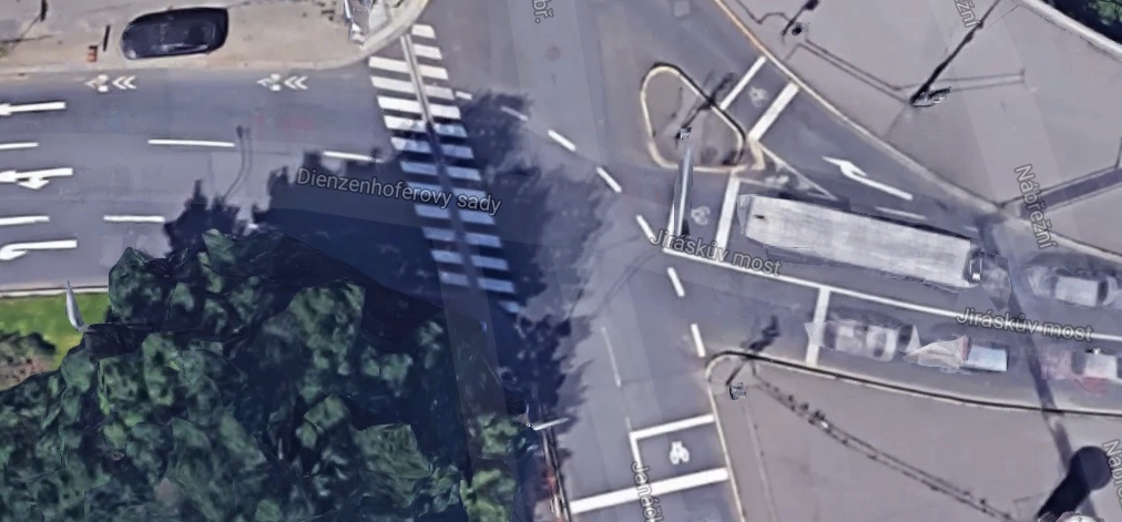 Možná napoví street view a svislé dopravní značení, doplněné vodorovným