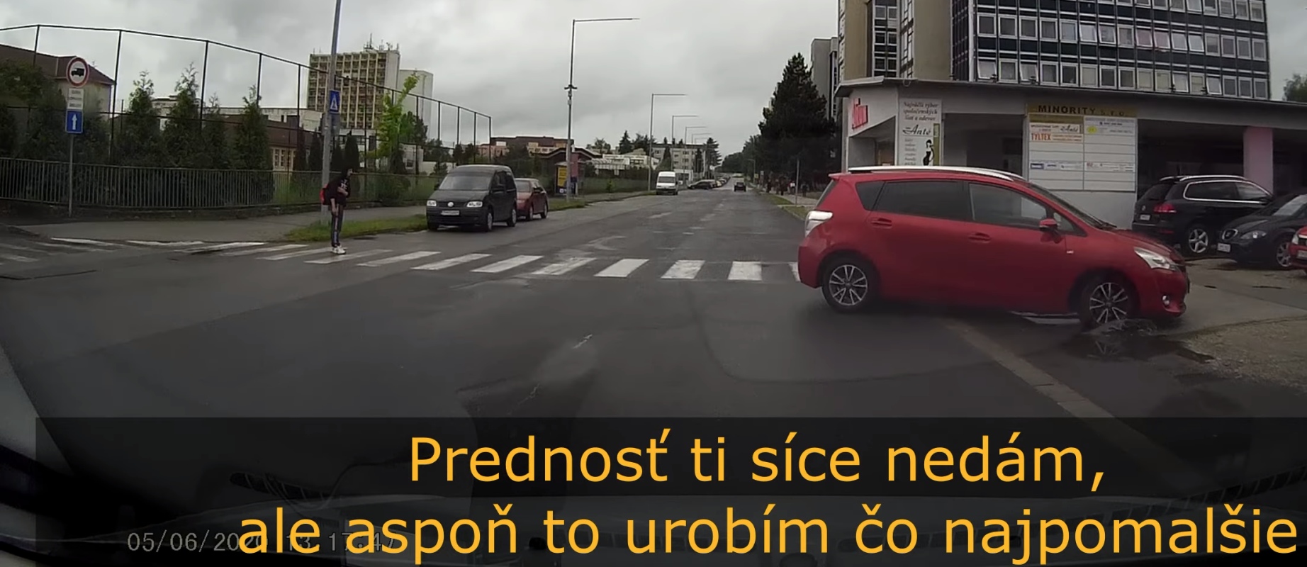 Dokonca co viem, ohladom povinnosti zastat ,tak to chceli este upravit v zakone s formulkou, ze ak ma chodec v UMYSLE vstupit na prechod - cize ked vidime chodca kracat k priechodu pre chodcov, automaticky predvidas a mas vediet, ze na prechod pre chodcov vstupi a rovno mas spomalovat a zastavit. Toboz ako je na videu, ze chlapec stoji uz na prechode, len ma pud sebazachovy a ma skusenost s arogantnymi polovodicmi, tak radsej neriskuje.