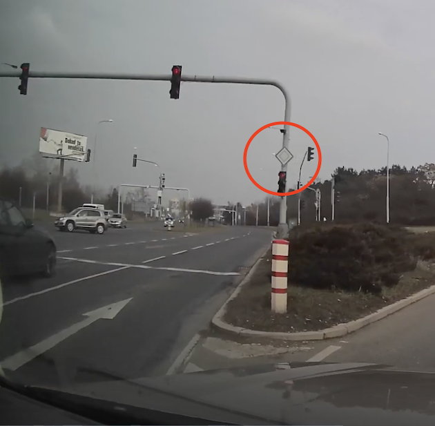 Opravdu mi chcete tvrdit, že červeně ohraničený úsek, ve kterém ale ani červené vozidlo není, je už hlavní pro červené vozidlo??