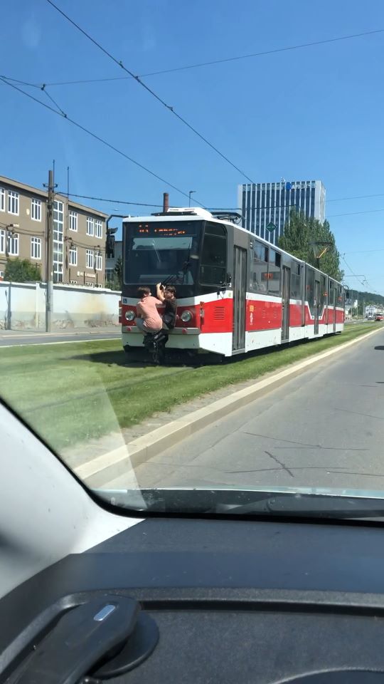 To je to samý jako cyklista vs. červená na přejezdu. Každej druhej to dává do videa... A já ne. At si jede, já bych na kole možná nejspíš jel taky. Řeší se strašný hovna
