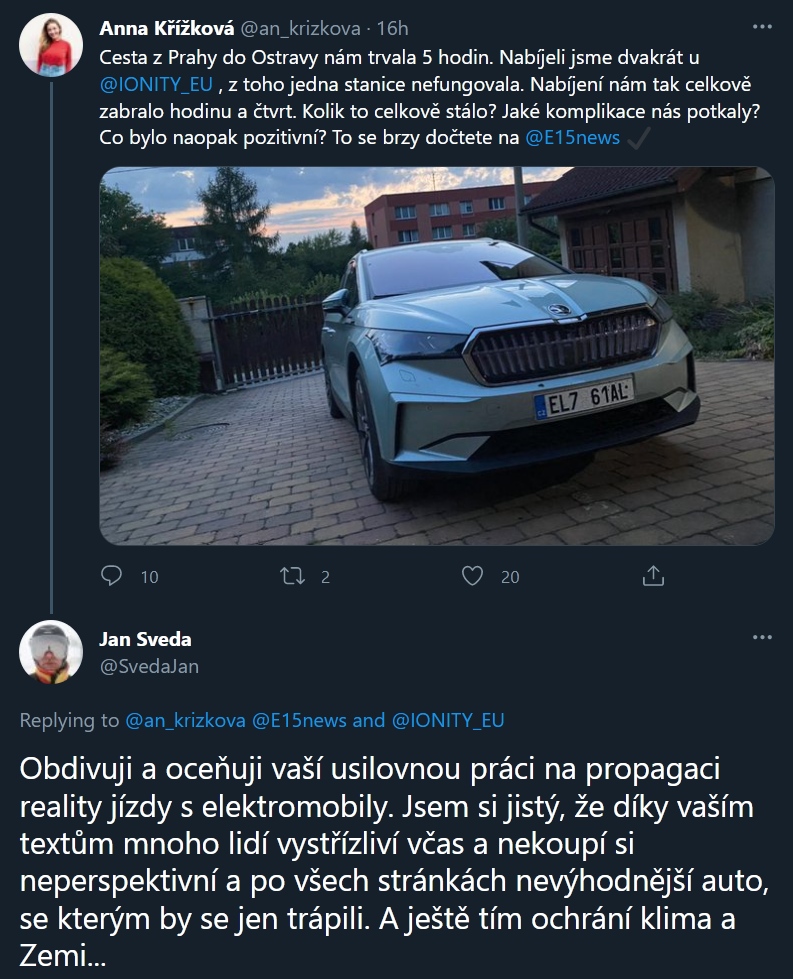 Včko na baterky s dojezdem od Žižáka tak přes Prahu na Zličín na nabíječku