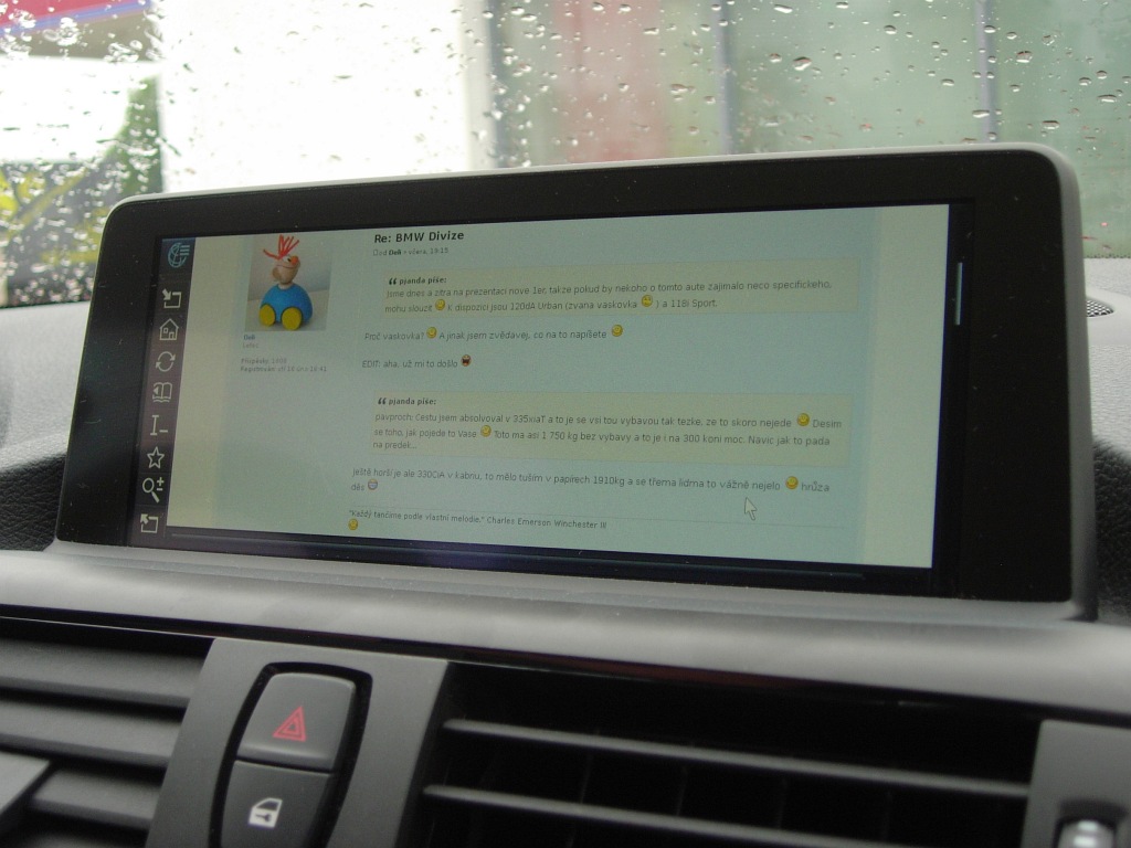 pjanda píše:Jsme dnes a zitra na prezentaci nove 1er, takze pokud by nekoho o tomto aute zajimalo neco specifickeho, mohu slouzit :) K dispozici jsou 120dA Urban (zvana vaskovka ;) ) a 118i Sport.
