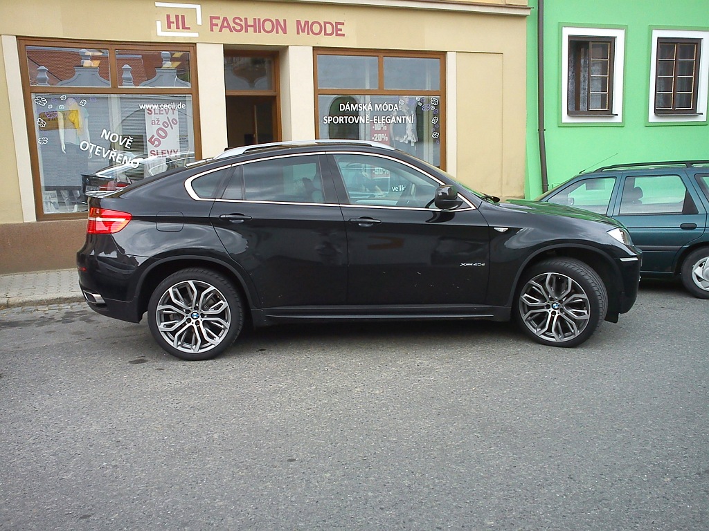 Kdyz jsme u X6, pridam fotku jednoho kousku, na ktery jsem narazil minuly tyden na cestach. To auto je jako obvykle priserne, ale fascinuji me ta (pravdepodobne) originalni kola. To vypada jak auto pro hlavniho hrdinu serialu Zivot na zamku...