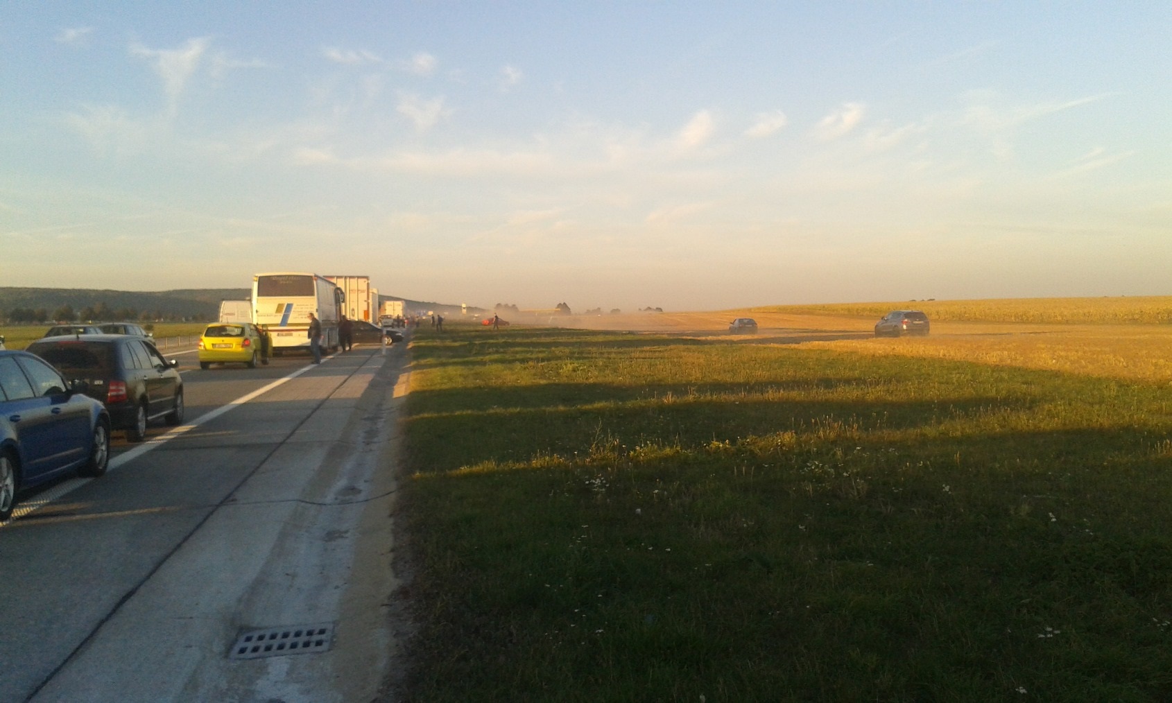 No a treti vec - pred zuzenim na R46 za Vyškovem od Brna. Jeden maniak si zkratil cestu k benzince pres pole a za nim nasledovalo davove silenstvi polem nepolem, to jsem jeste nevidel