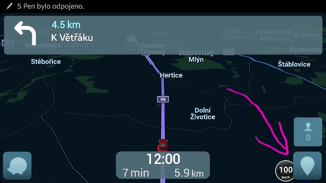 Taky se mi zdá, že to teď nějak divně počítá. Stojím v červenohnědé zácpě, o které očividně ví, a stejně počítá, jako by tam nic nebylo, čas dojezdu po minutě naskakuje...