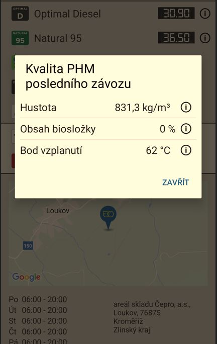 Parametry posledního závozu na té které pumpě jde sledovat v appce.