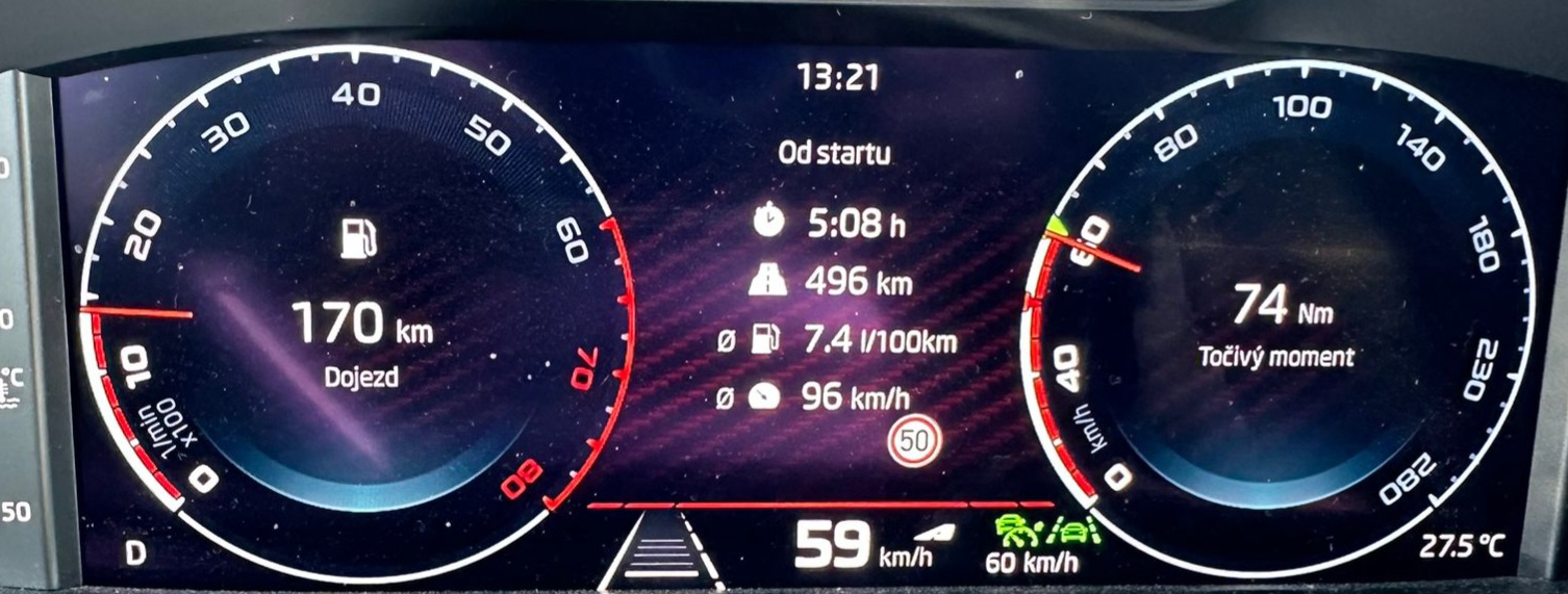 Touran 1.4TSI. Vacsina trasy v rozmedzi 150-160, obcas 200. 5 dospelych ludi na palube a batozina odpovedajuca tomu. Cakal som o liter viac.