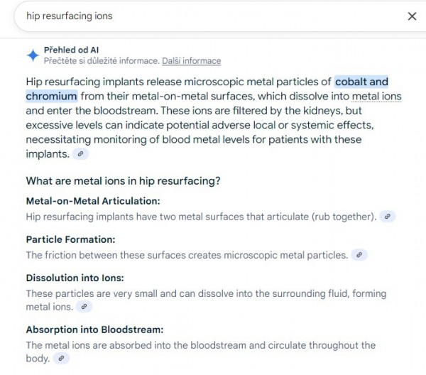 Pravda je totiž ta, že POUZE nekvalitní indické M-o-M resurf implantáty to způsobovaly, ale chytily se toho (nevědoucí) media a udělaly z toho takovou aféru, že nakonec NHS a další ortopedické asociace pod tím talkem vydaly doporučení/zákazy M-o-M vůbec dělat. Já sám mám kvalitní britský resurf implantát a po 23 letech in(g)tenzivního používání mám ionty kovů v krvoi srovnatelné s nemluvnětem.