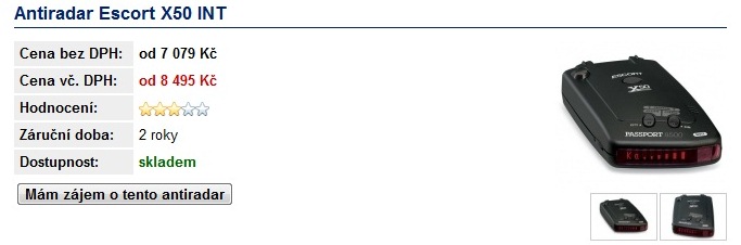 Co nám to zase chcete nalhat, soudruhu kandidáte?? Při letmém pohledu na Vaše stránky se dočtu, že VY tento detektor skladem nemáte a je na objednávku...AntiRadary.cz píše:Že by docházely zásoby starých X50 EURO a konečně se chystalo uvedení X50 Intl na český trh?