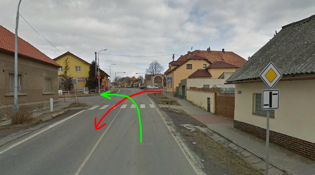 Však tam tu značku jistě má.řidičBOB píše:přednost má zelená šipka. červená, než se rozjede do křižovatky, tak vidí přijíždět vozidlo po hlavní...jeho značka je pravděpodobně P04. Tím, že červenej najede na hlavní ještě neznamená, že je na hlavníTo by musel minout nějakou dopravní značku před křižovatkou, do které vjíždí.